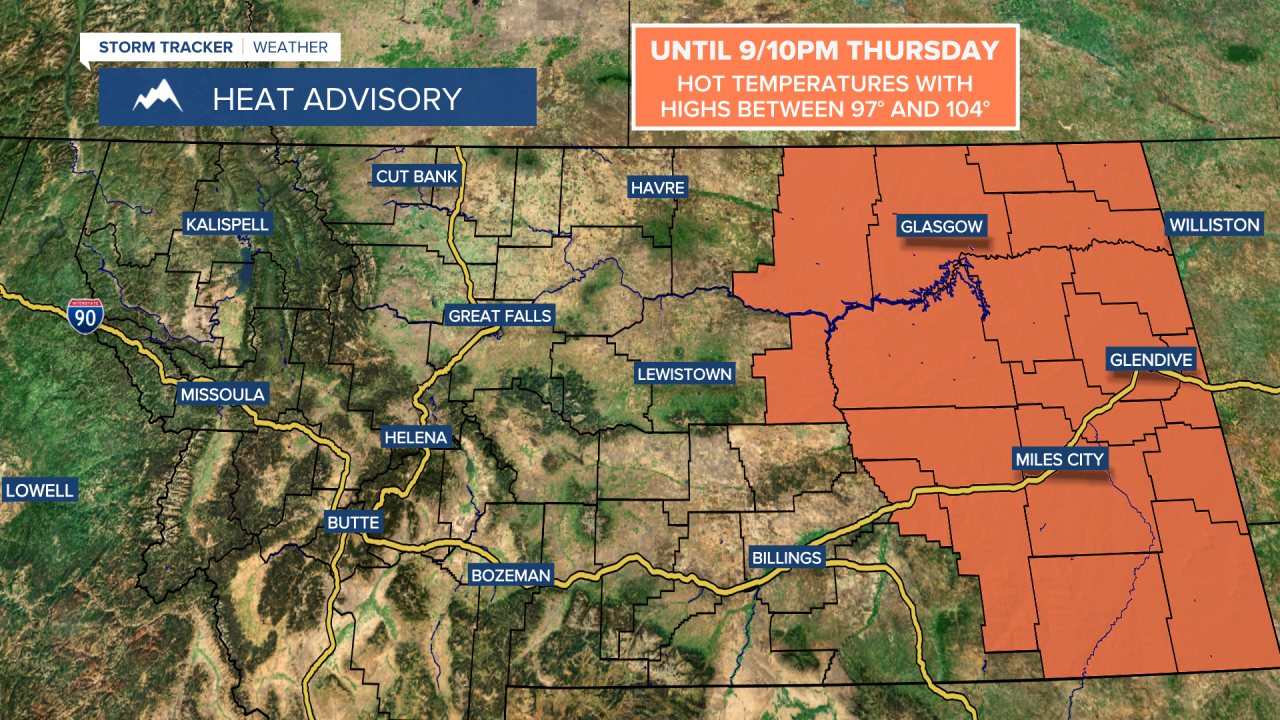 A HEAT ADVISORY is in effect for eastern Montana until 9pm/10pm Thursday. It is going to be hot this evening as temperatures are going to be in the 90s and low 100s.