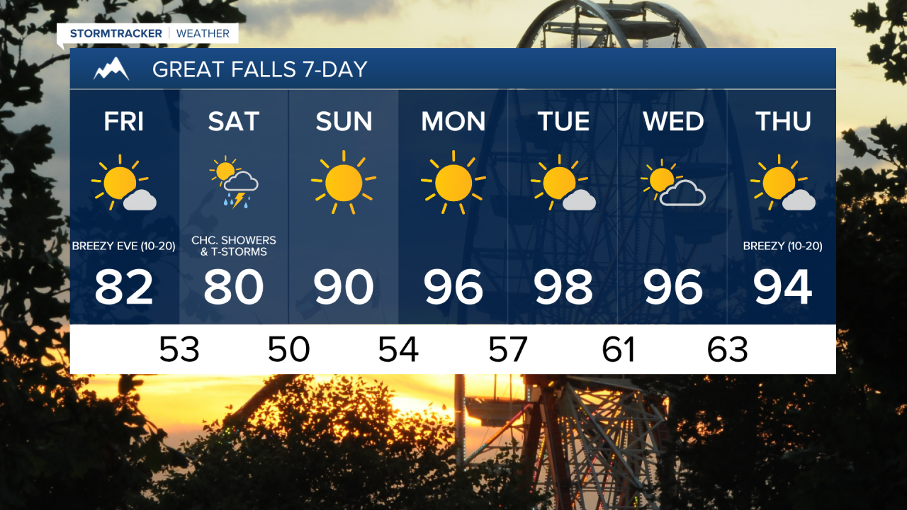 For Wednesday and Thursday, we are going to have a mix of sun and clouds with some isolated showers and thunderstorms around, generally during the evening hours and generally around the Helena area. It is also going to be hot and a little breezy on these two days as highs are going to be in the 90s and sustained wind speeds are going to be between 5 and 20 mph.