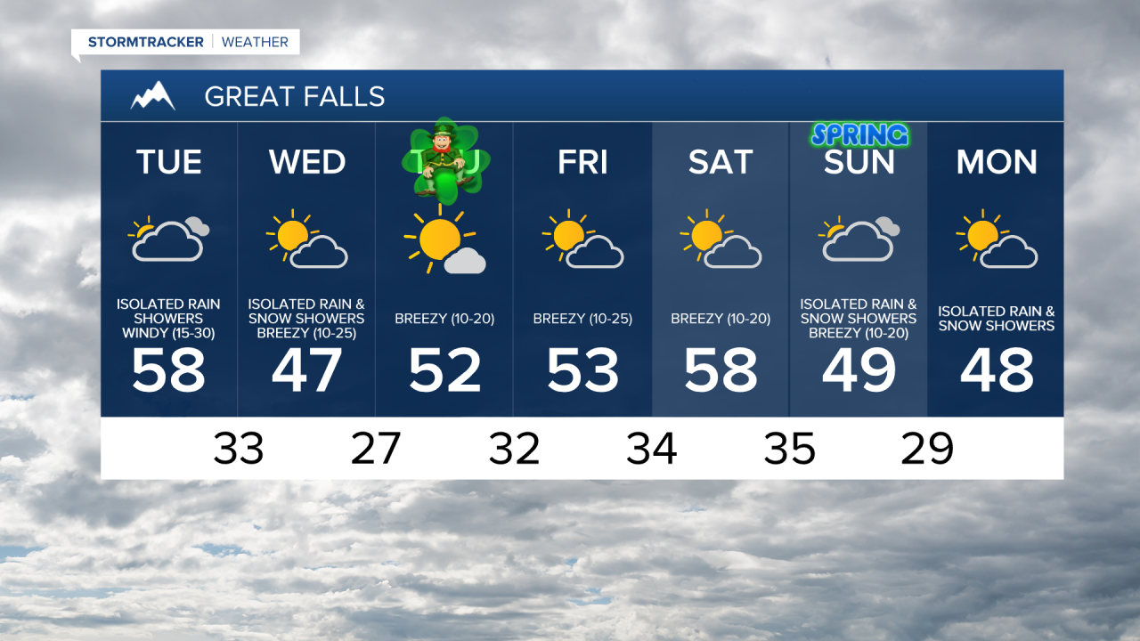 Beautiful weather is then expected on St. Patrick’s Day as we are going to have mostly sunny skies, dry conditions, seasonable temperatures (highs in the mid to upper 40s and low to mid 50s), and just a bit of a breeze around (sustained wind speeds between 5 and 20 mph).