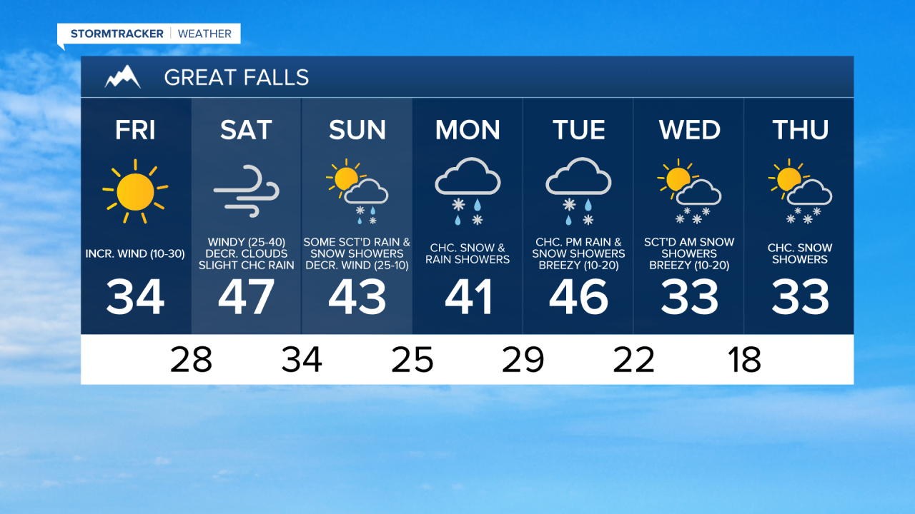 Strong winds are then expected from Friday night through Saturday night as sustained wind speeds are going to be between 20 and 40 mph, and wind gusts over 60 mph are going to be possible at times. Per usual, even stronger winds are expected along the Rocky Mountain Front. We are then going to have diminishing wind throughout the day on Sunday. It is also going to be warmer this weekend than it is going to be tomorrow as highs are going to be in the 40s in most locations.