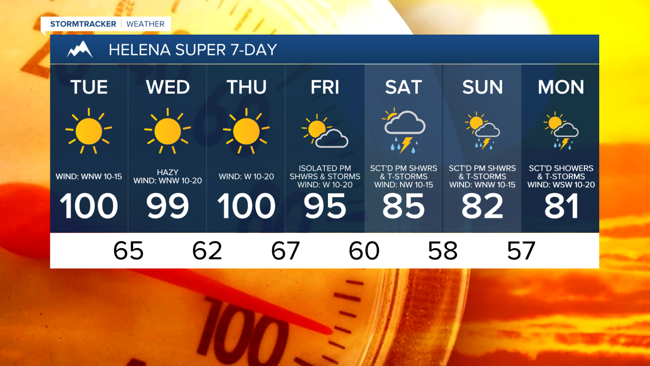 We are going to have clear skies and mild temperatures tonight as lows are going to be in the mid to upper 50s and low 60s. For tomorrow, we are going to have lots of sunshine and very hot temperatures as highs are going to be in the mid to upper 90s and low 100s. It is also going to be breezy tomorrow afternoon/evening along/just east of the Rocky Mountain Front as sustained wind speeds are going to be between 10 and 25 mph.