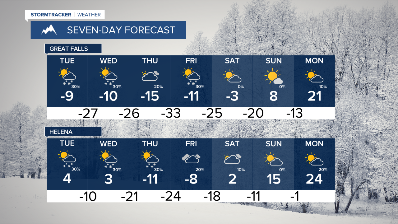 Great Falls and Lewistown will be under a Wind Chill Warning starting tomorrow at 6 p.m. due to temperatures feeling like -55°F.