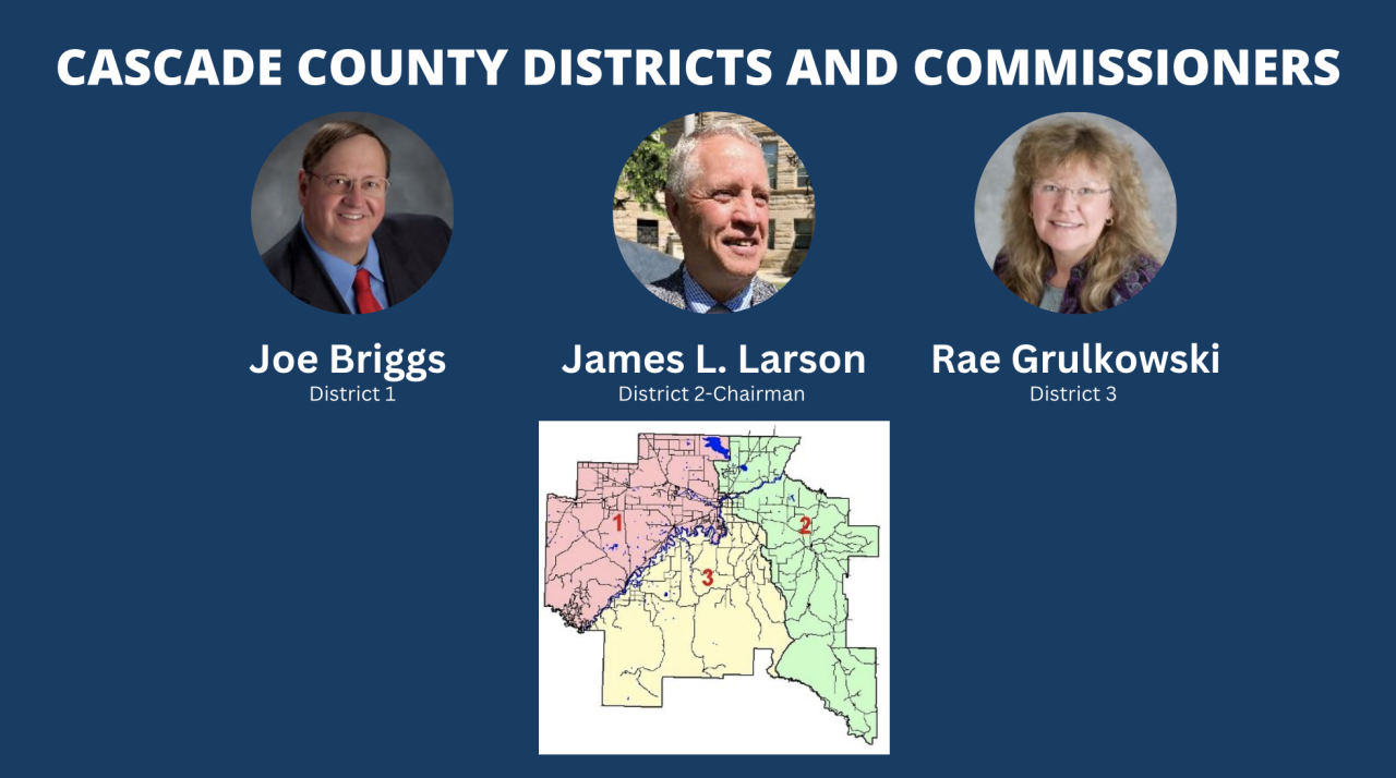 Each town, city, and county has their own form of government. Cascade County has a commission form of government. The commission form includes three commissioners elected county wide. The three have to reside in a specific district that is as geographically and population balanced as possible. The position is partisan, meaning the commissioners who run do align with a specific political party.