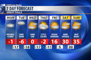 Helena for instance is expected to remain in the teens and twenties for daytime highs.