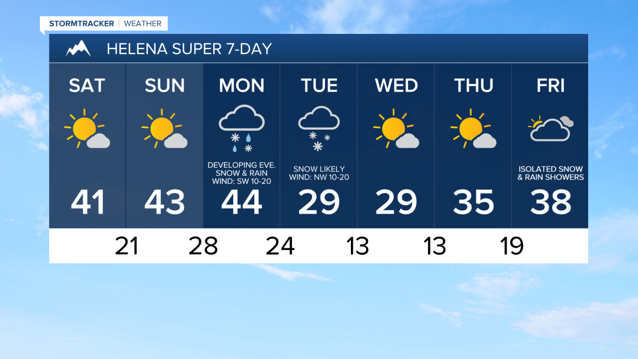 There are then going to be areas of precipitation around from Monday evening through Tuesday as a storm system passes through our area. This precipitation is initially going to begin as a rain/snow mix, but it will changeover to all snow as colder air moves in. Right now, the largest impacts from this storm system are expected to be along the Rocky Mountain Front and in central Montana, including around Great Falls, Helena, and Lewistown. Along the Hi-Line and in northeastern Montana, the precipitation is going to be more showery in nature, so it is not going to be as impactful. In the lower elevations, a few inches of snow accumulation is possible by Wednesday morning, while in the mountains, several inches of snow accumulation is possible by Wednesday morning.