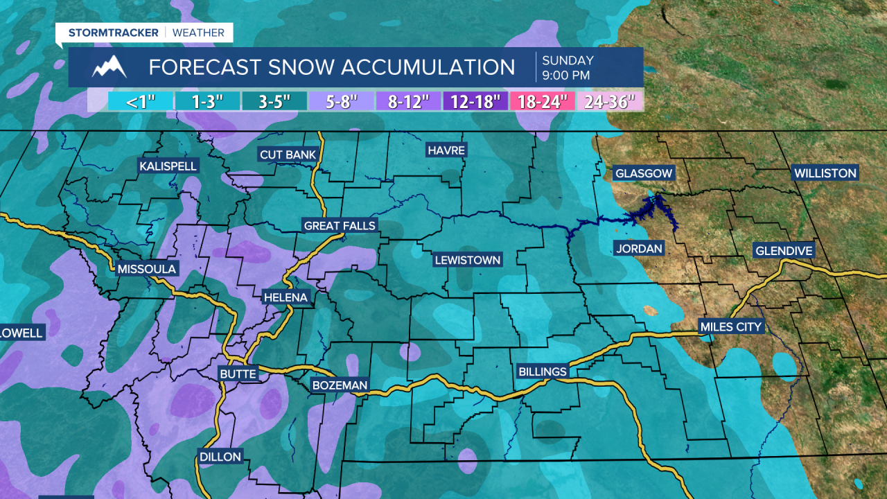 There is still a lot of uncertainty with snow amounts for this weekend as how much snow we receive depends on how quickly the rain changes over to snow as well as how much snow initially melts on contact with the ground due to the warm temperatures that we have had here of late. Right now, I expect little to no snow accumulation in northeastern Montana, and 1 to 6 inches of snow accumulation in the lower elevations within central and north-central Montana (isolated spots may receive up to 8 inches of snow accumulation). In the mountains, 3 to 12 inches of snow accumulation is possible by the end of the weekend.