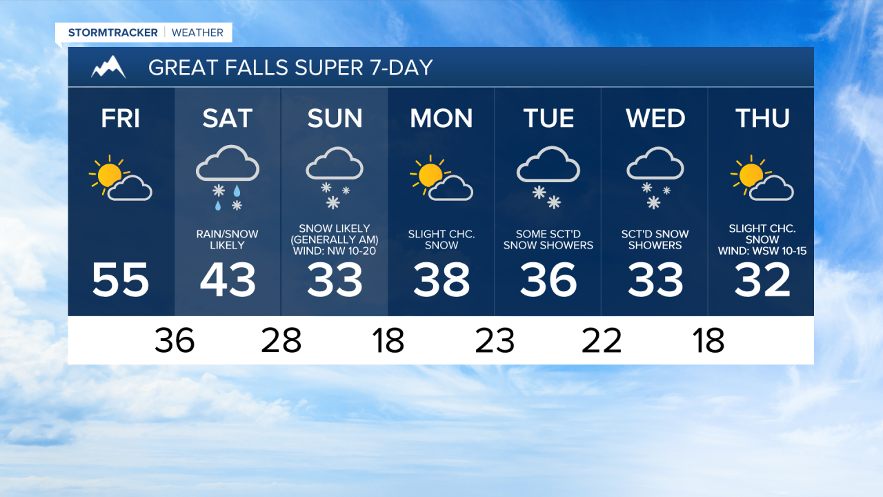 Cooler and wetter weather is then expected this weekend as an upper-level trough is going to be in control of our weather. On Saturday, there are going to be areas of precipitation around throughout the day (especially in central Montana and western portions of north-central Montana), with the precipitation becoming more widespread as the day goes on. In the lower elevations, precipitation will start out as rain in a lot of locations, but this rain will eventually mix in with and switch over to snow as the day goes on.
