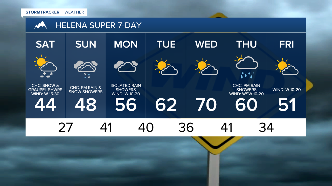 Cooler temperatures will then return for the end of next week as highs are going to be in the 60s and upper 50s on Thursday and the mid to upper 40s and low to mid 50s on Friday. Gusty winds are also going to return later next week as sustained wind speeds on Thursday and Friday are going to be between 10 and 30 mph, and wind gusts over 40 mph are possible. We are also going to have partly to mostly cloudy skies on these two days with a few rain and snow showers around the Helena area, generally in the mountains, and some isolated rain and snow showers around in north-central Montana.
