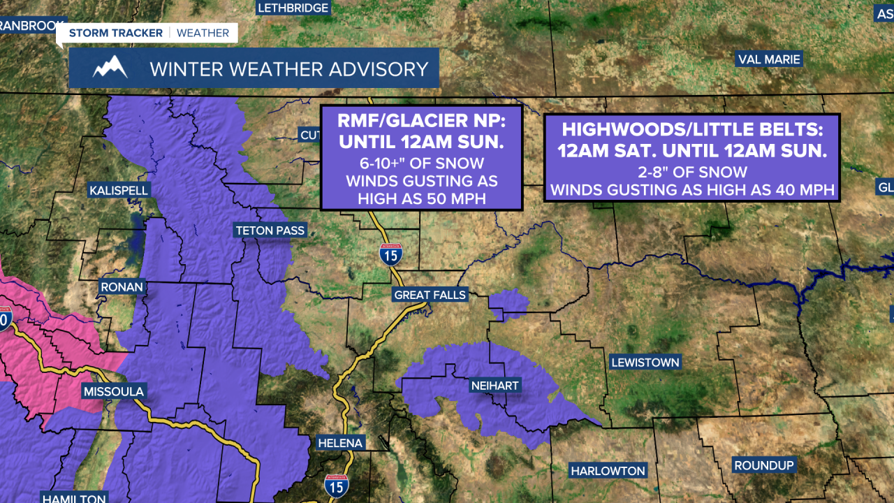 A WINTER WEATHER ADVISORY is in effect for the Highwoods and Little Belts from 12am Saturday until 12am Sunday.