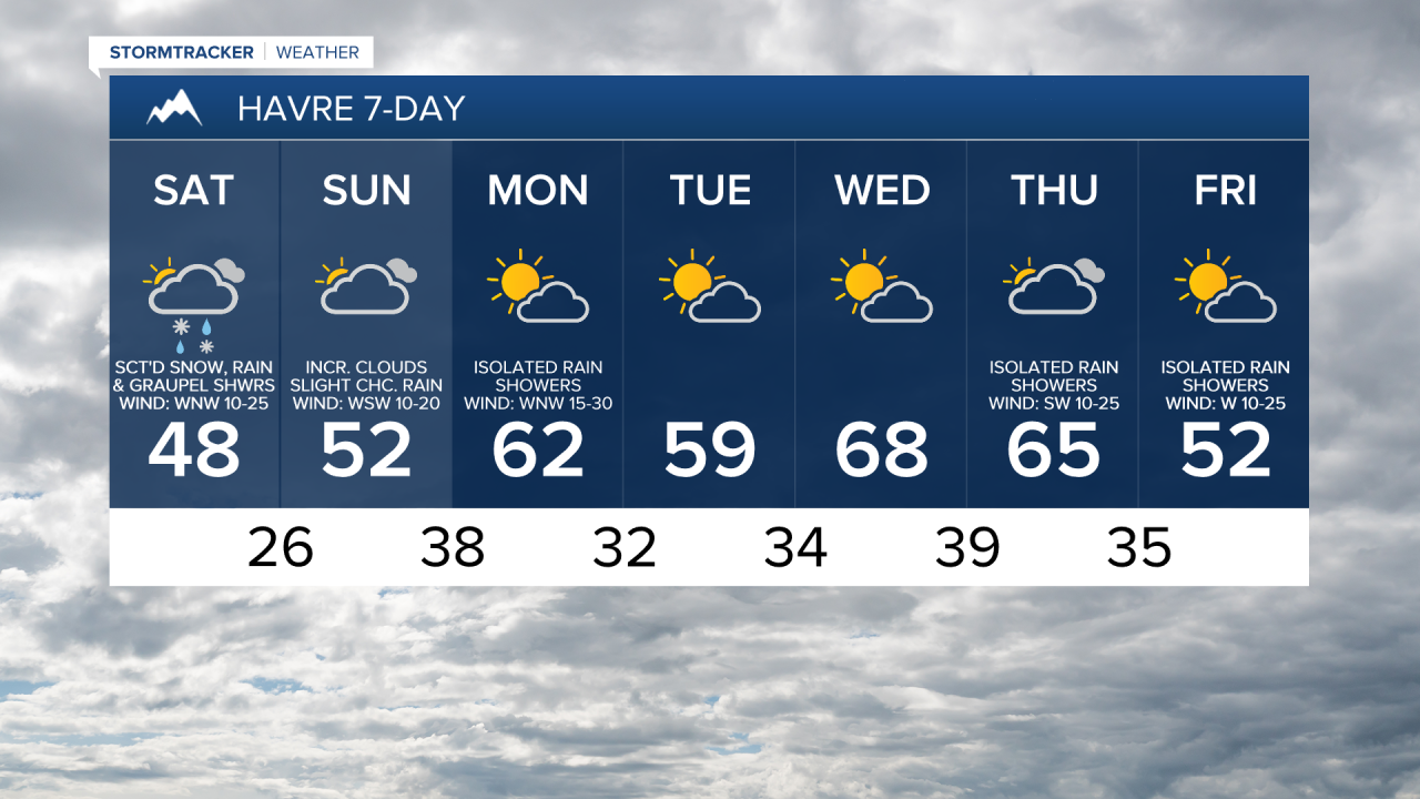 We are then going to have mostly cloudy skies on Sunday with some scattered rain/snow showers around the Helena area, generally during the PM hours, and a few isolated rain and snow showers around in north-central Montana as the next disturbance begins to approach our area. The wind is also going to be weaker on Sunday than it is going to be tomorrow, but it is still going to be breezy as sustained wind speeds are going to be between 10 and 25 mph. It is also going to be warmer on Sunday than it is going to be tomorrow as highs are going to be in the 40s and low to mid 50s.
