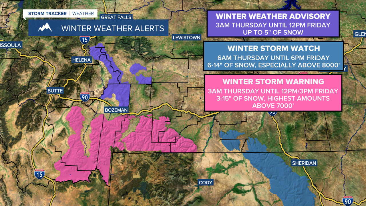A WINTER STORM WARNING is in effect for some of the mountains in southwestern and south-central Montana from 3am Thursday until 12pm/3pm Friday.