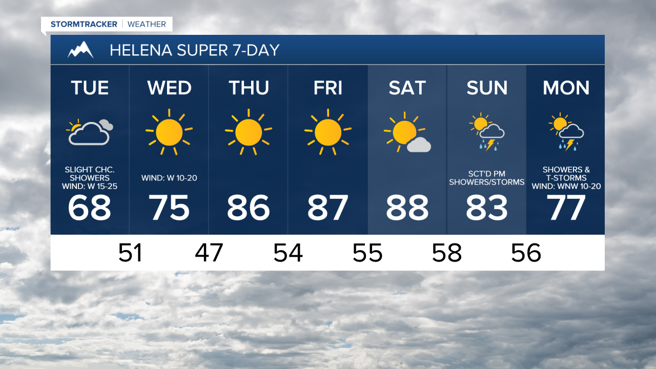 There are going to be scattered showers and thunderstorms around this evening and tonight, mainly in locations east of I-15, as a cold front continues to pass through our area. We are also going to have partly cloudy skies tonight. For tomorrow, we are going to have partly to mostly sunny skies in north-central Montana and mostly cloudy skies around Helena. There are also going to be some isolated showers around tomorrow, generally in the mountains and in northeastern Montana. We are then going to have lots of sunshine and mainly dry conditions on Wednesday. It is also going to be cool tonight as lows are going to be in the 40s and upper 30s. We are then going to have seasonable temperatures tomorrow and Wednesday as highs are going to be in the 60s and low to mid 70s in most locations, with Wednesday being the warmer day.