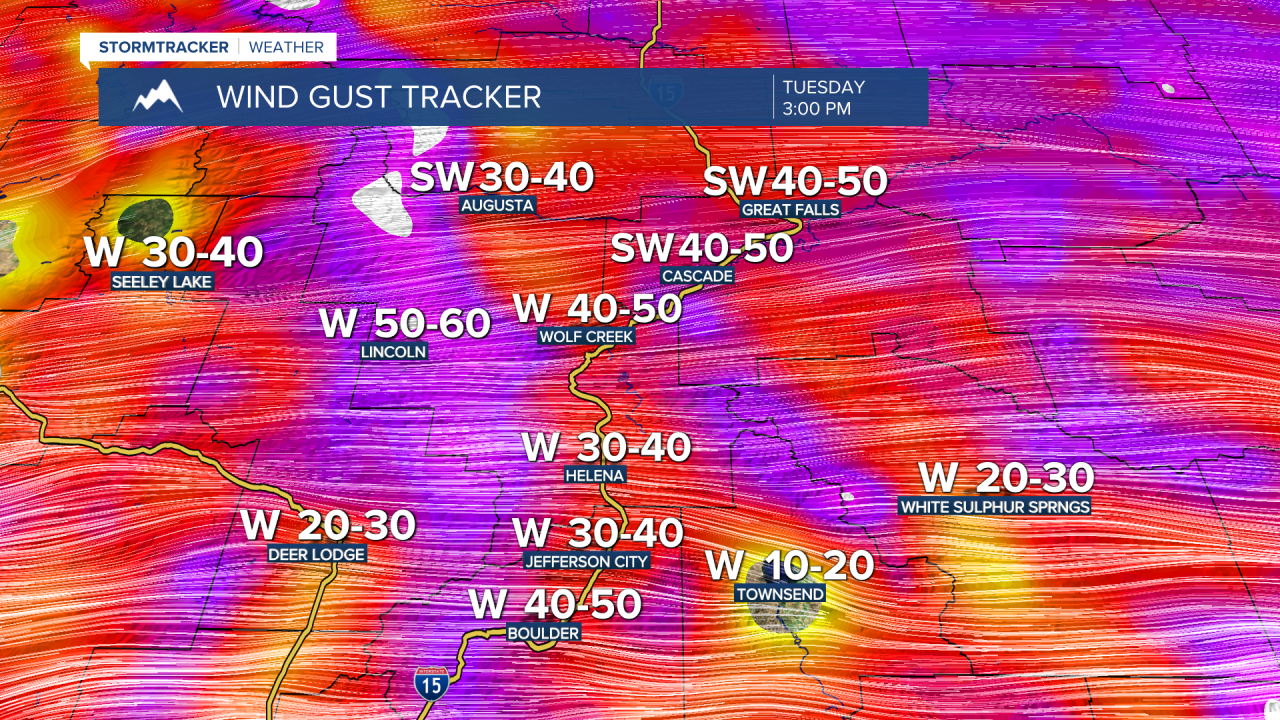 Windy conditions are expected through Wednesday, with the strongest wind expected during the day on Tuesday. Wind gusts up to 80 mph are possible along the Rocky Mountain Front and along the Hi-Line between the Divide and I-15, and wind gusts up to 65 mph are possible everywhere else (with widespread wind gusts over 40 mph likely). Sustained wind speeds in most locations through Wednesday will be between 15 and 40 mph. The weakest wind over the next couple of days will be in the valleys (including Helena and Townsend), but wind gusts up to 40 mph are still possible in those areas with sustained wind speeds between 10 and 30 mph. Also, the wind will be coming out of the west in most locations over the next few days.