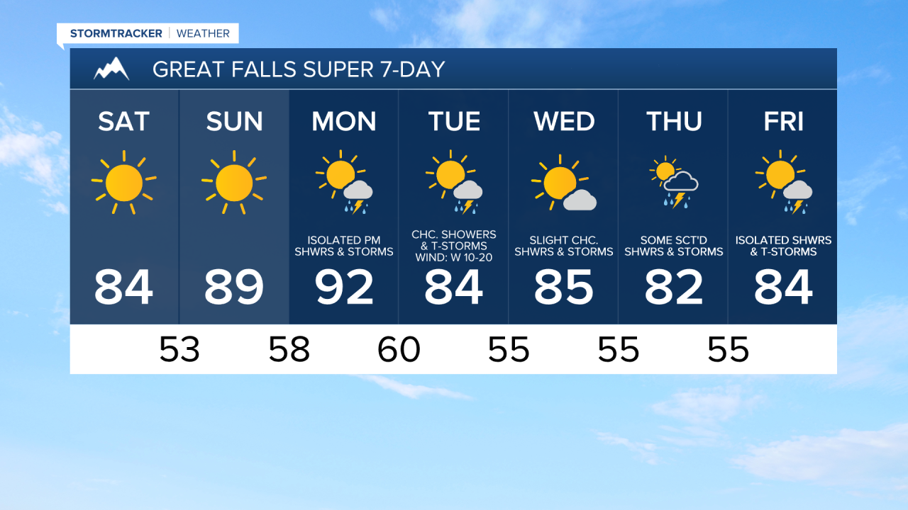 On Monday, we are going to have increasing clouds with a few scattered showers and thunderstorms around during the afternoon/evening, generally in central Montana and in the mountains. It is also going to be hot on Monday as highs are going to be in the mid to upper 80s and low to mid 90s.