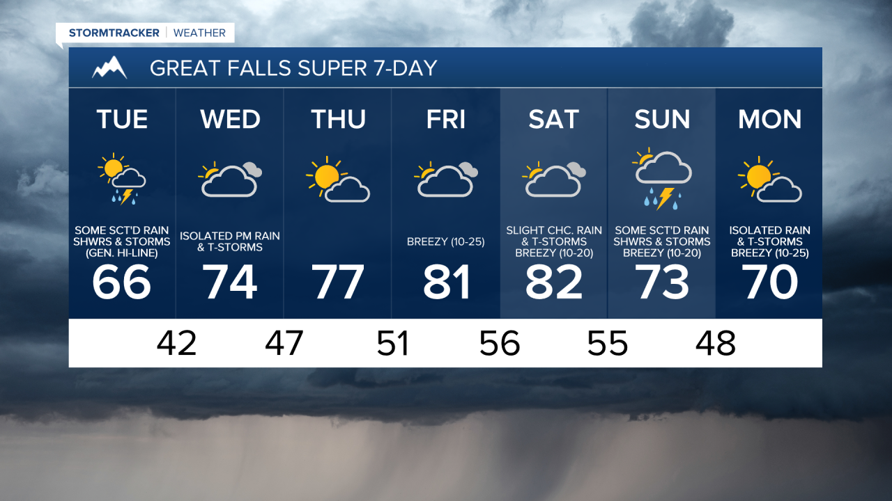 It is going to be cool tonight and tomorrow as lows tonight are going to be in the 40s in most locations, and highs tomorrow are going to be in the 60s and upper 50s in most locations. There is also going to be a bit of a breeze around tonight along the Rocky Mountain Front. It is then going to be a bit breezy throughout central Montana tomorrow as sustained wind speeds are going to be between 10 and 20 mph.