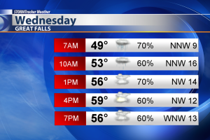 There'll be a great chance for showers and thunderstorms for everyone in Montana on Wednesday.