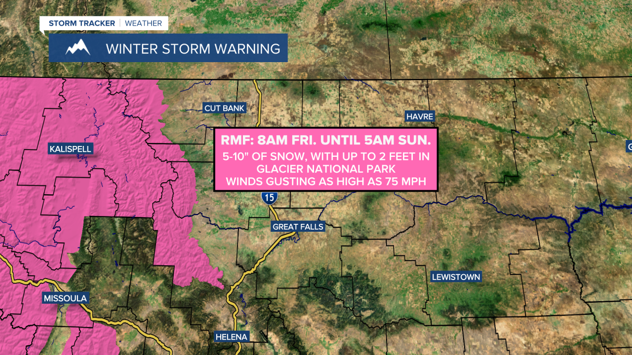 A WINTER STORM WARNING is in effect for the Rocky Mountain Front from 8am Friday until 5am Sunday.