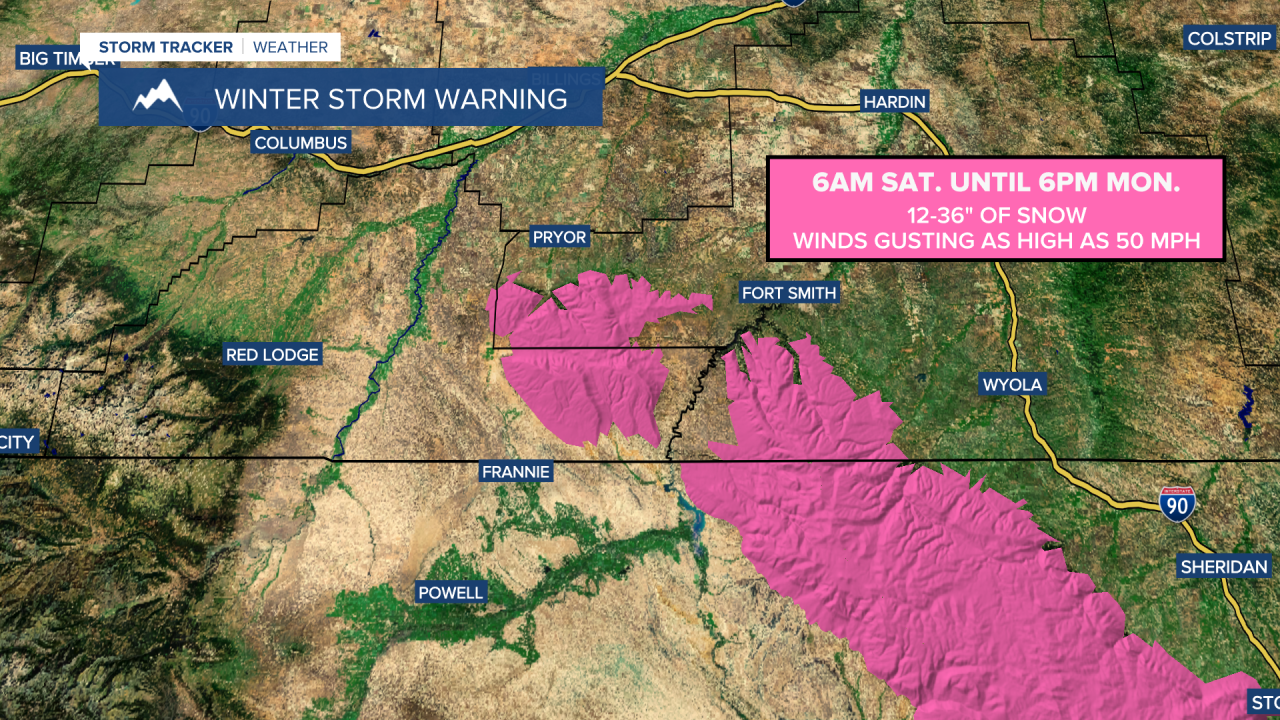A WINTER STORM WARNING is in effect for the Judith and Snowy Mountains in Fergus County from 12am Saturday until 12am Monday and for the Bighorn and Pryor Mountains from 6am Saturday until 6pm Monday.