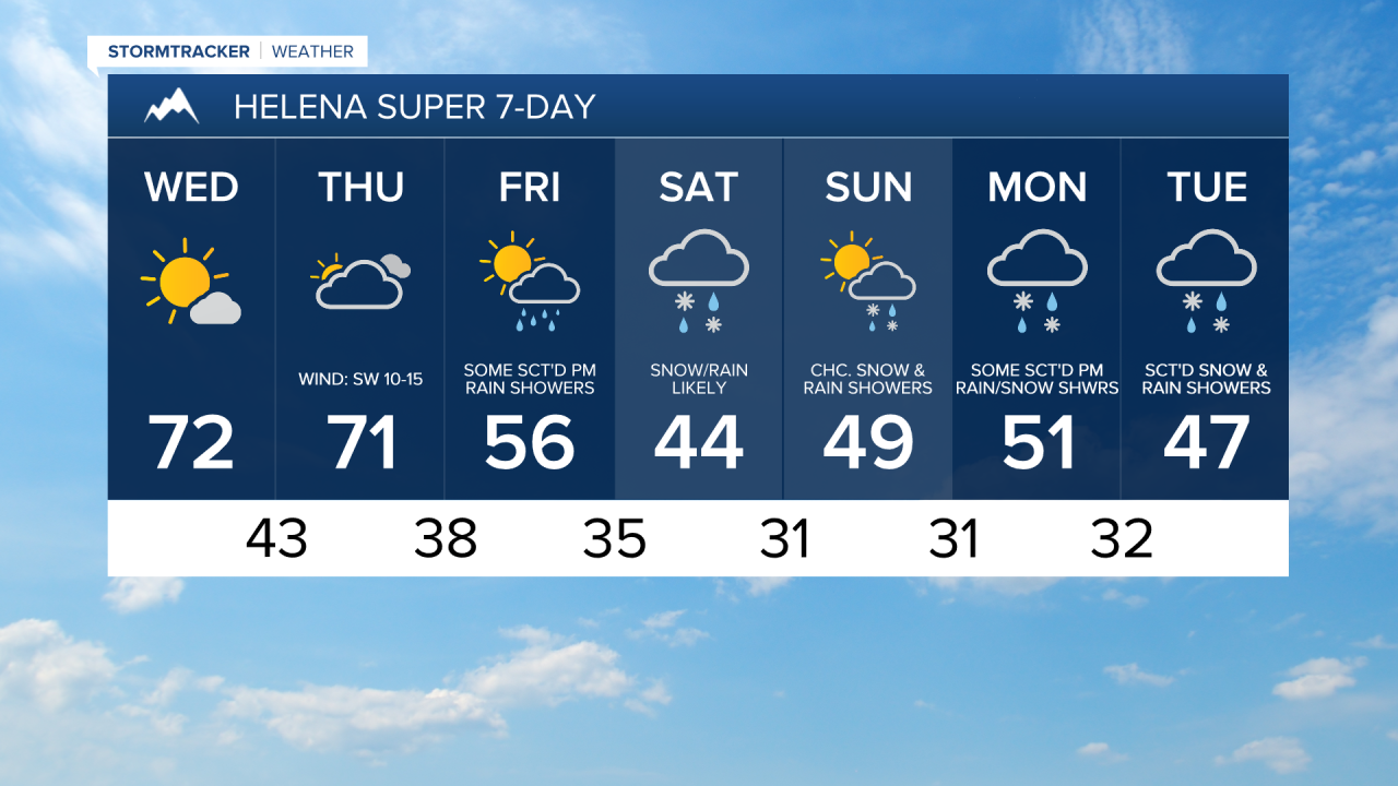 To begin next week, there are going to be scattered rain and snow showers around Helena, especially in the mountains, and there are going to be a few rain and snow showers around in north-central Montana as another disturbance impacts our area. We are also going to have mostly cloudy skies and seasonable temperatures early next week as highs are going to be in the mid to upper 40s and low to mid 50s. There is also going to be a bit of a breeze around on Tuesday as sustained wind speeds are going to be between 10 and 20 mph.