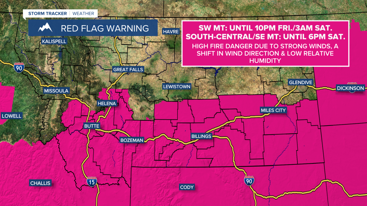 A RED FLAG WARNING is in effect for most of southwestern Montana until 10pm Friday or 3am Saturday.