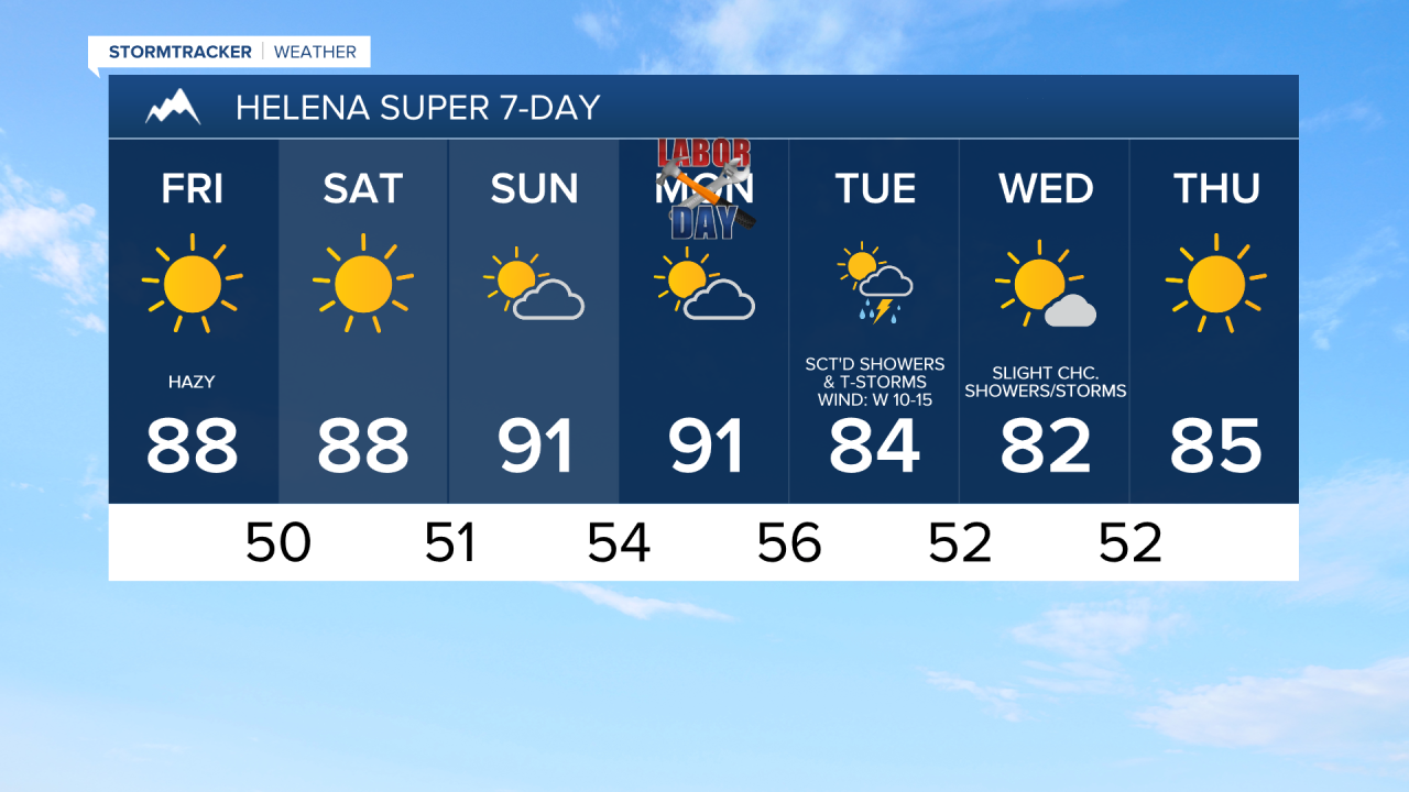 For tomorrow and Saturday, we are going to have lots of sunshine and dry conditions. It is also going to be very warm on these two days as highs are going to be in the 80s and low 90s, with tomorrow being the warmer day. It is also going to be breezy tomorrow along the Rocky Mountain Front as sustained wind speeds are going to be between 10 and 20 mph. Elsewhere, there is just going to be a little breeze around tomorrow as sustained wind speeds are going to be between 5 and 15 mph. Little to no wind is then expected on Saturday. It is also going to be hazy tomorrow in southwestern and south-central Montana, including around the Helena area, and it will be a little bit hazy tomorrow in southern portions of north-central Montana, including around Great Falls.