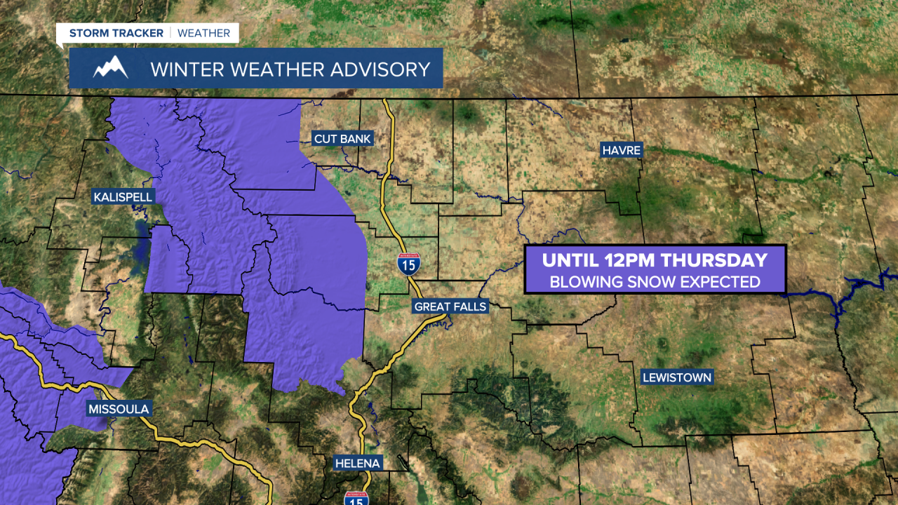 A WINTER WEATHER ADVISORY is in effect for the Rocky Mountain Front until 12pm Thursday. Blowing snow is expected.